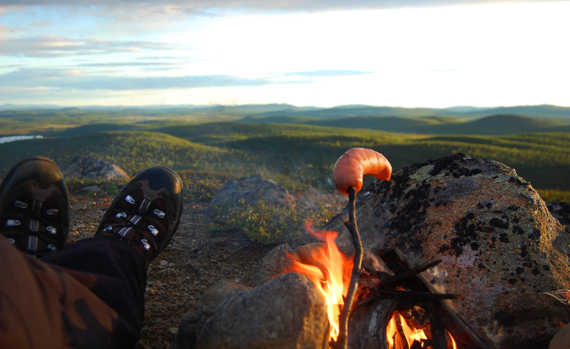 A continuación, realizaremos un sensorial y silencioso Baño de Bosque o Shinrin Yoku, donde os enseñaremos el lenguaje de la naturaleza en este apasionante lugar, que se desarrollará por medio de una ruta sencilla que discurre por un serpenteante sendero a orillas del rio Jutuua, famoso entre los locales por la pesca con mosca, donde haremos una parada para disfrutar de nuestra primera comida al calor del fuego en medio del camino.