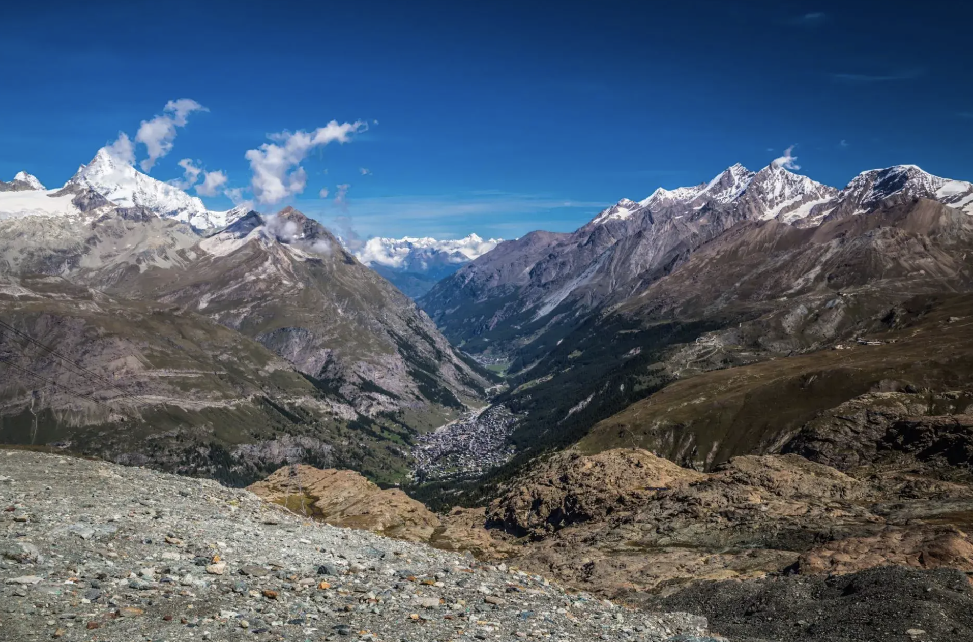 Una bajada vertiginosa y potente donde verás cómo cambia el ecosistema alpino, desde las rocas desnudas del glaciar hasta los prados de Zermatt.