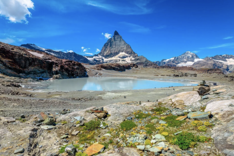 Recorreremos el Matterhorn Glacier Trail, un sendero que serpentea bajo la cara este de la montaña y ofrece vistas imponentes de los macizos del Monte Rosa y el Breithorn.